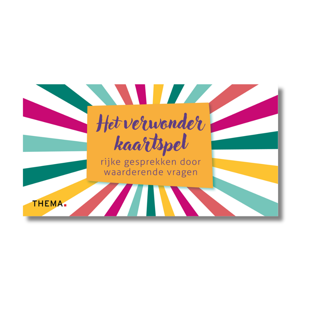 De kaarten zijn ingedeeld in 16 thema’s zoals ‘leren van succes’, ‘een blik op de gewenste toekomst’ en ‘veerkrachtig omgaan met tegenslag’. Het spelen van Het Verwonderkaartspel zorgt niet alleen voor boeiende gesprekken, maar bevordert ook zelfinzicht, veerkracht en een positieve kijk op de toekomst. Het is bruikbaar voor iedereen die zoekt naar praktische handvatten voor verdiepende gesprekken waarin mensen ook geprikkeld worden om te onderzoeken wat al wél goed gaat of wat wél gewenst is. Het is dé tool voor wie op zoek is naar betekenisvolle verandering.